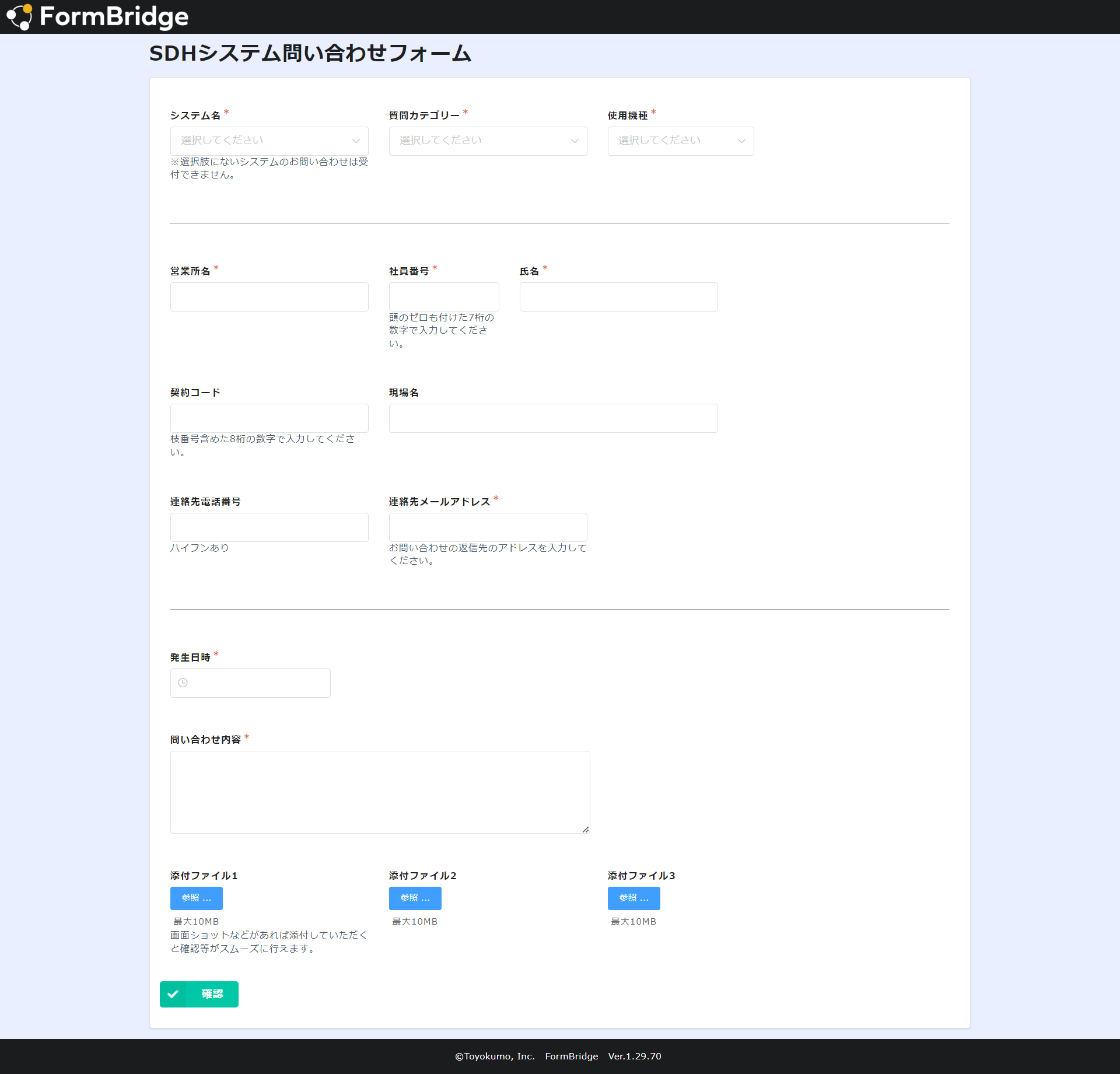 ▽画面のスクリーンショットがあると確認・返答にかかる時間が短縮されますので、可能であれば「添付ファイル1~3」に添付をお願いします。